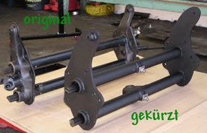 Da es nicht sehr leicht ist diese so entsprechend hinzubekommen. (Ohne zu Prahlen, ich kenne jemanden der sowas kann). In diesem Fall müssen die Schräglenker neu angefertigt werden. Sie passen weder in der Länge noch im Winkel zu den Originalen. Das bei allem Umbauen die Handbremsseile und Bremsleitungen nicht sofort passen ist doch wohl klar, oder? Damit hat sich dann auch das Problem mit der Motoraufhängung erledigt, es sei denn die Motorisierung fällt so dermaßen stark aus, das eine zusätzliche Drehmomentstütze nicht schaden kann.